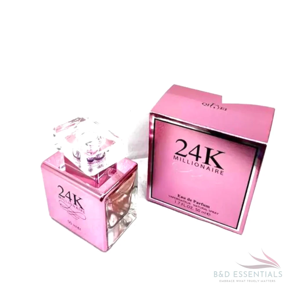 The 24K Millionaire Pink Eau De Parfum (50ml) is a luxurious floral-fruity fragrance designed for women. It features top notes of green apple, orange blossom, and peach; middle notes of Chinese jasmine, gardenia, and Moroccan rose; and base notes of vanilla, amber, and sandalwood citeturn0search6. This long-lasting eau de parfum offers a refreshing and lightweight scent, making it suitable for daily wear and special occasions