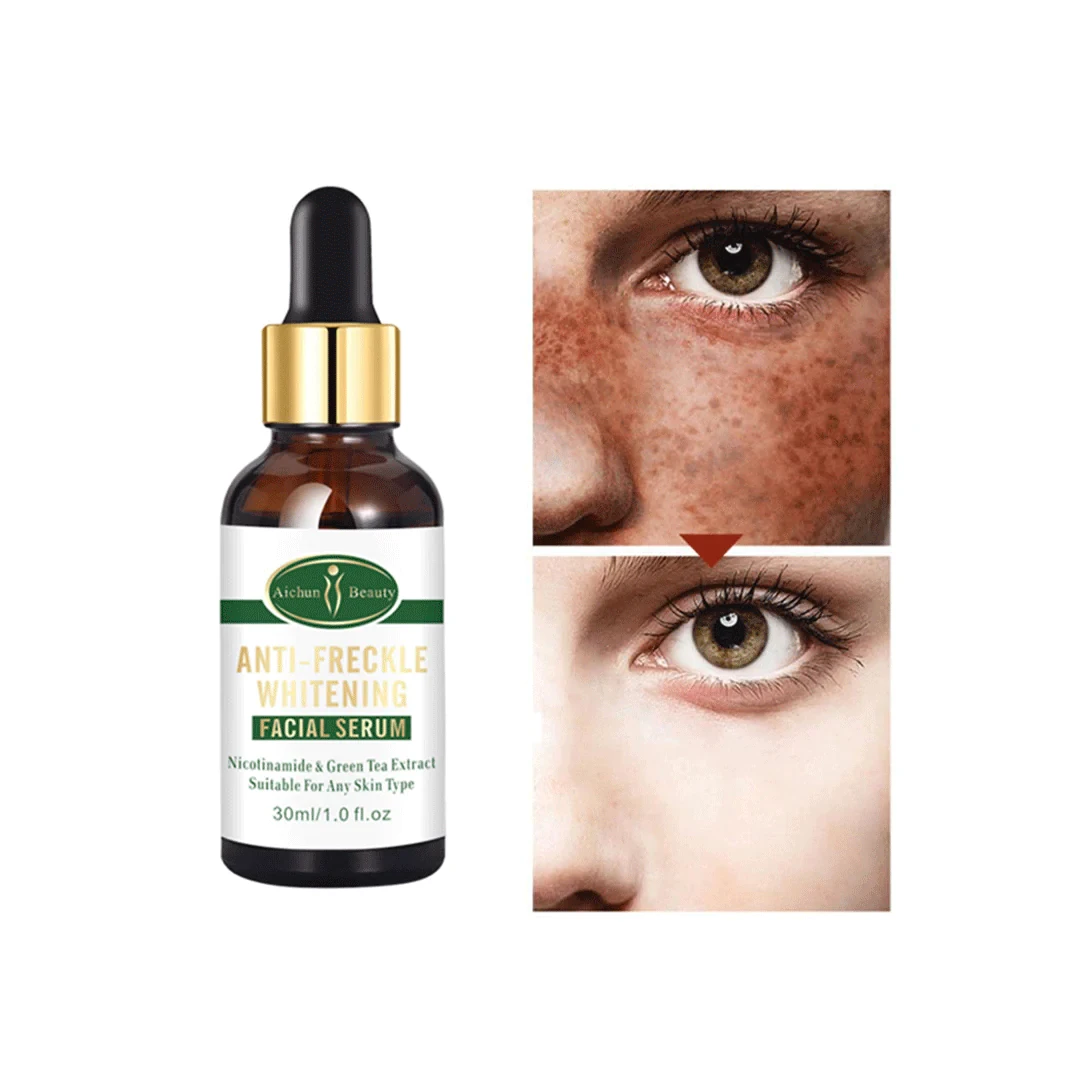 Aichun Beauty Face Serum Anti Freckle AC31951 30MLis a skincare product formulated to address pigmentation issues such as freckles, sun spots, and chloasma. It contains ingredients like niacinamide, green tea extract, and vitamin E, which work together to brighten the skin, reduce discoloration, and provide lasting moisture. Suitable for all skin types, this serum aims to leave the skin smooth, delicate, and revitalized.