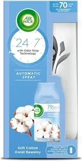 The Air Wick Freshener Auto Machine with Soft Cotton Refill is an automatic air freshener that releases bursts of fragrance at regular intervals to keep your home smelling fresh.