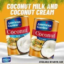American Garden Coconut Milk 400ML is a versatile, plant-based cooking ingredient made from pressed ripe coconut meat. Packaged in a 400ml can, it offers a smooth consistency and authentic coconut flavor, ideal for enhancing both sweet and savory dishes. Common uses include curries, soups, smoothies, vegan recipes, and baked goods. The product contains coconut extract, water, stabilizer (E412), emulsifier (E435), and citric acid (E330) as an acidity regulator. It is suitable for vegan diets and is free from cholesterol and added sugars.