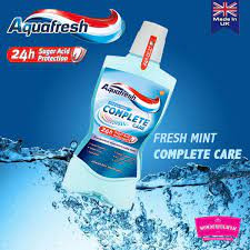 **Aquafresh Complete Care Mouthwash Fresh Mint 500ml** is an alcohol-free mouthwash designed for daily use by individuals aged 6 and above. It offers six key benefits: ([Aquafresh Complete Care Freshmint Mouthwash 500Ml -