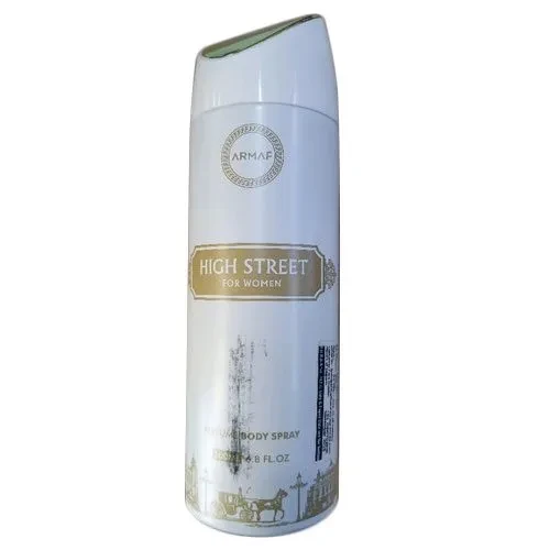 Armaf Deodorant Body Spray Women High Street (200ML)** is a refreshing and long-lasting body spray designed for women. It offers a pleasant, feminine fragrance with notes of florals and fruits, providing a light and invigorating scent. The spray helps keep you feeling fresh throughout the day while also serving as a subtle perfume alternative. Its compact size makes it convenient for on-the-go use.