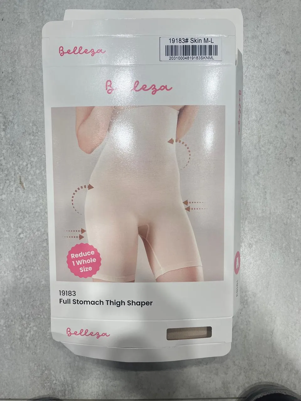 The Belleza Body Shaper 19183 in Skin Color (Full Stomach & Thigh, Size M-L) appears to be a full-coverage shaping garment, though I don't have direct search results for this exact model. Here's what I can determine based on Belleza's product line and similar items: