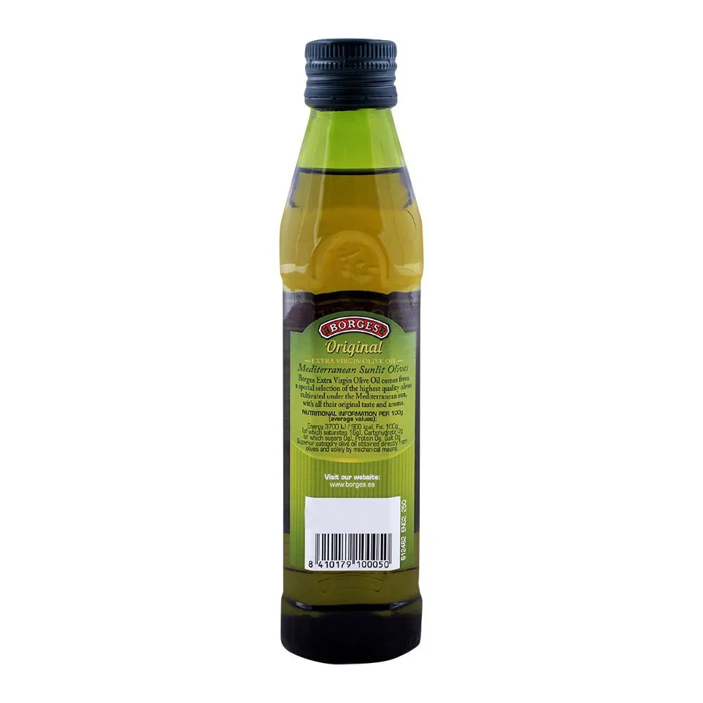 Borges Extra Virgin Olive Oil (250ml) is a premium, cold-pressed olive oil known for its rich flavor, fruity aroma, and high-quality extraction process. Ideal for dressings, dips, and low-heat cooking, it retains natural antioxidants and a smooth, balanced taste. Packed in a dark glass bottle to preserve freshness, it’s a versatile choice for health-conscious consumers.