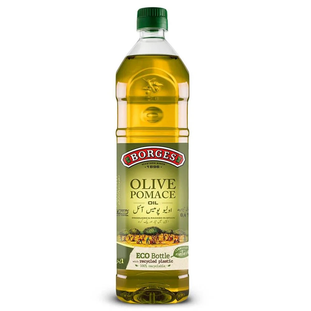 Borges Olive Oil Pomace 1L is a refined olive-pomace oil blended with a small percentage of virgin olive oil for flavor. It is a cost-effective option suitable for high-heat cooking like frying, baking, and sautéing, offering a neutral taste and high smoke point. Ideal for everyday culinary use where the distinct flavor of extra virgin olive oil isn't required. Comes in a convenient 1-liter bottle.