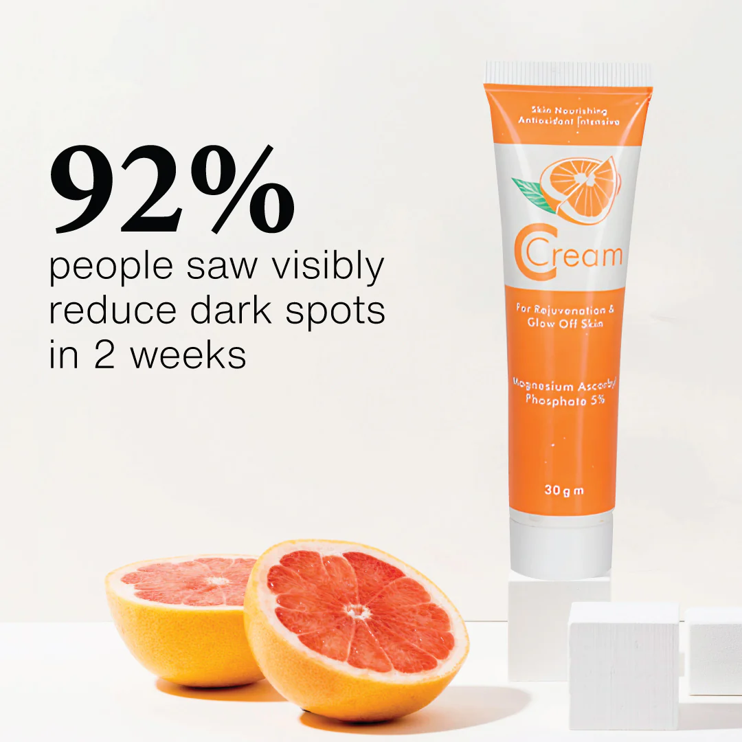 C Cream Vitamin C Medicated 30g is a skincare product designed to brighten the skin, reduce dark spots, and improve overall complexion. It contains Vitamin C (Ascorbic Acid) as its key ingredient, known for its antioxidant properties that help combat free radicals, promote collagen production, and enhance skin radiance.