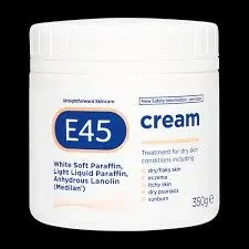 The E45 Cream Jar 350g is a rich, emollient moisturizer designed to soothe and hydrate dry, sensitive, or irritated skin. It contains light liquid paraffin, white soft paraffin, and lanolin to help restore the skin's moisture barrier.