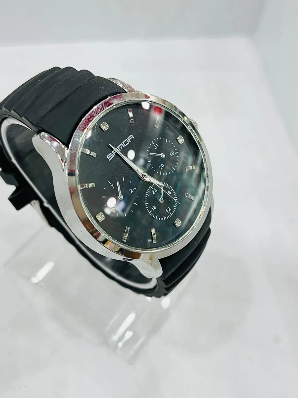 37mm white gold | Solid silver dial | Black handmade leather