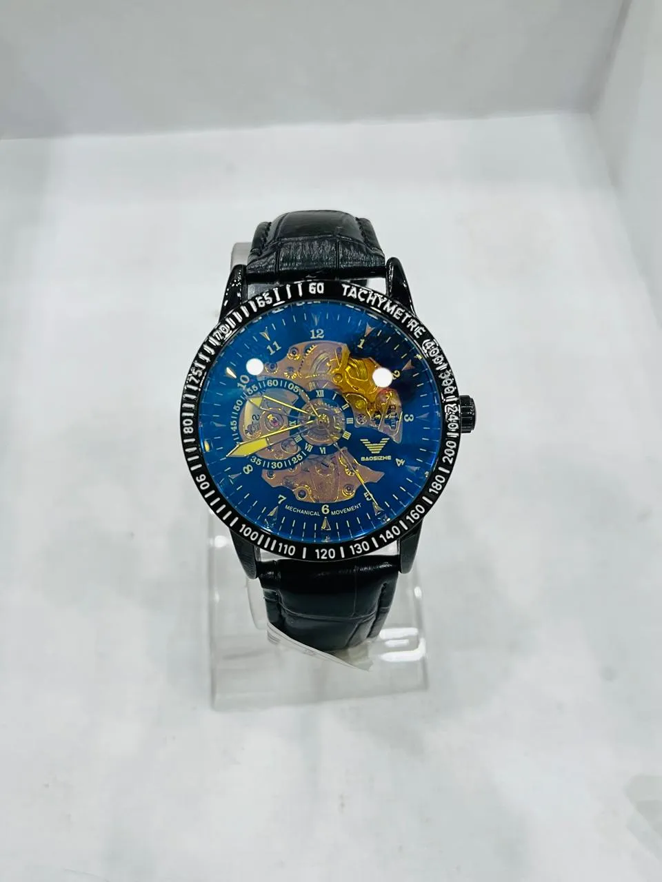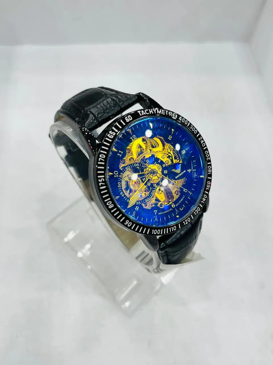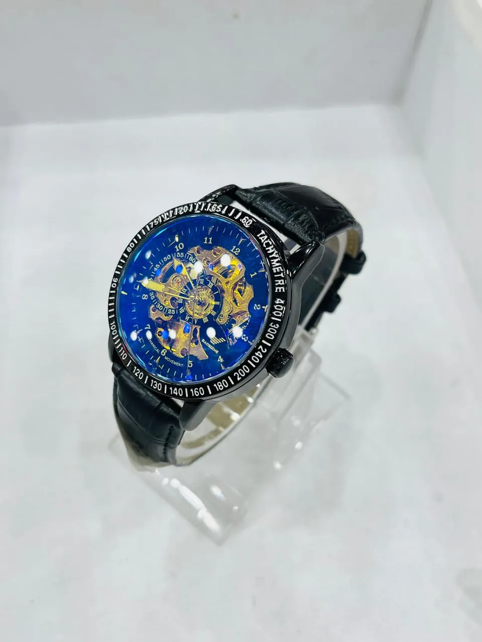 The Gents Watch TachyMetre Replica with Leather Strip is a stylish and functional timepiece designed to mimic high-end chronograph watches. It features a tachymeter scale on the bezel for measuring speed, a sleek analog display, and a premium leather strap for a classic, sophisticated look. The watch combines elegance and sporty appeal, making it suitable for both casual and formal occasions. The replica offers a luxury aesthetic at an affordable price.