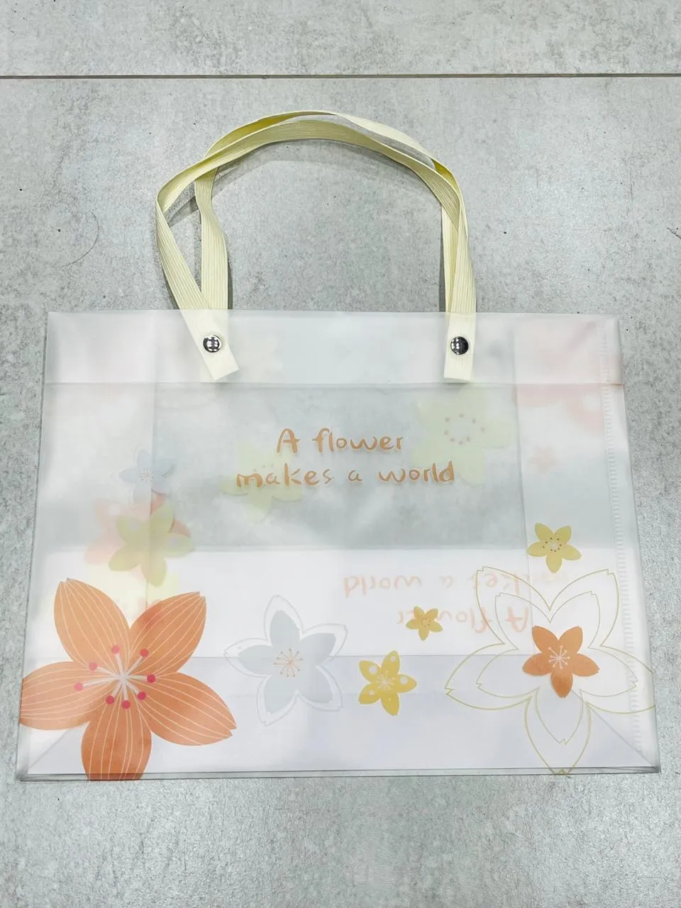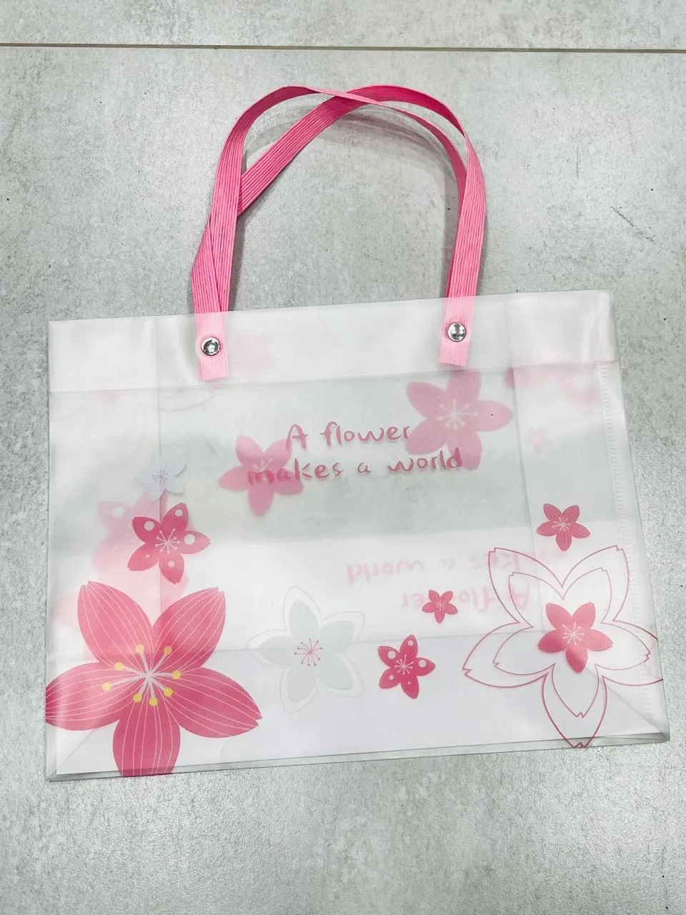 A beautiful gift bag made of plastic with a handle is a stylish and practical choice for presents. It features a sleek, glossy, or decorative design, often with vibrant colors, patterns, or elegant finishes like metallic or glitter accents. The sturdy plastic material ensures durability, while the attached handle (usually made of matching plastic or ribbon) makes it easy to carry. Perfect for birthdays, weddings, or special occasions, this reusable bag combines functionality with eye-catching appeal.