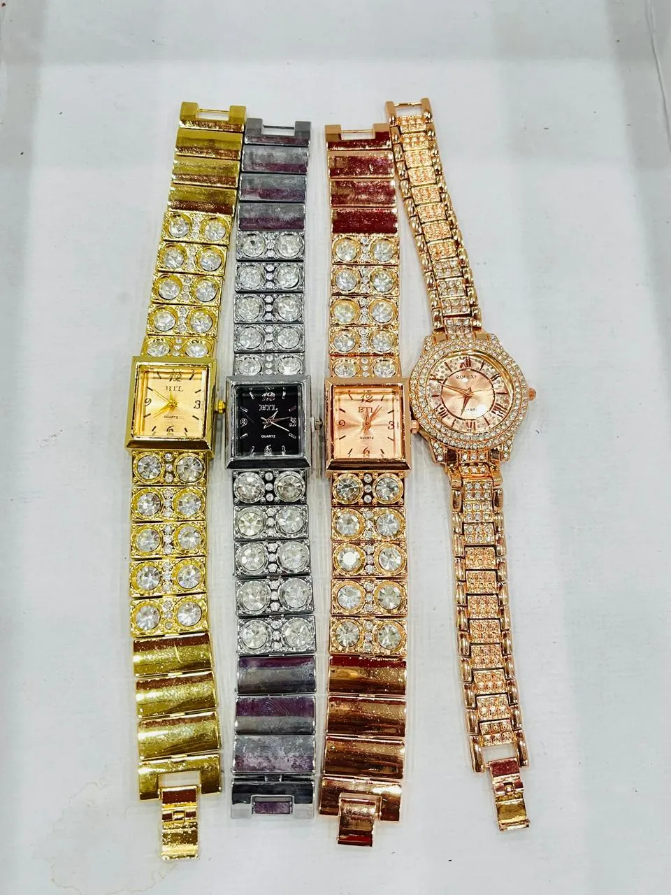 Ladies Watch BTL Chain Golden Artifical Diamonds