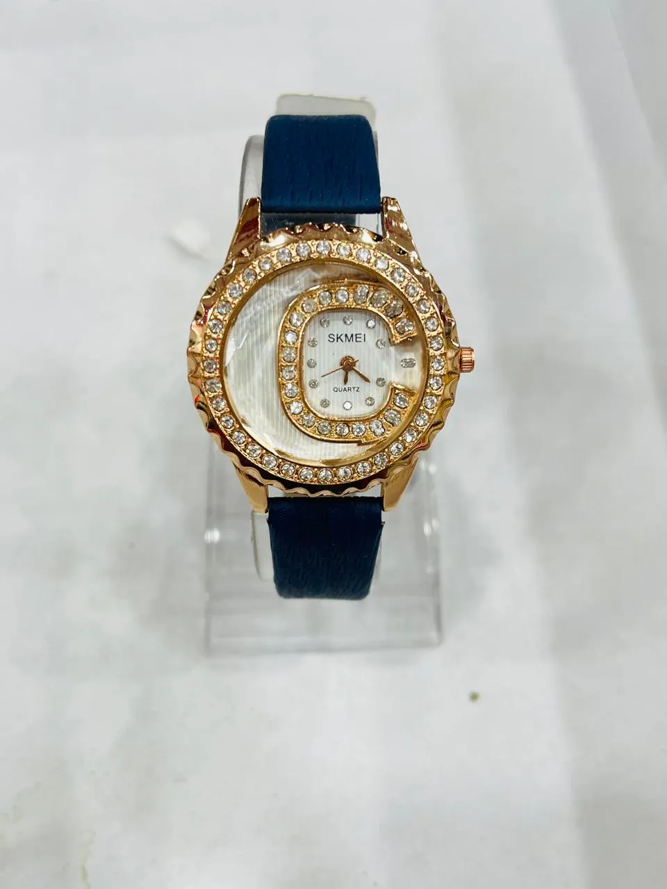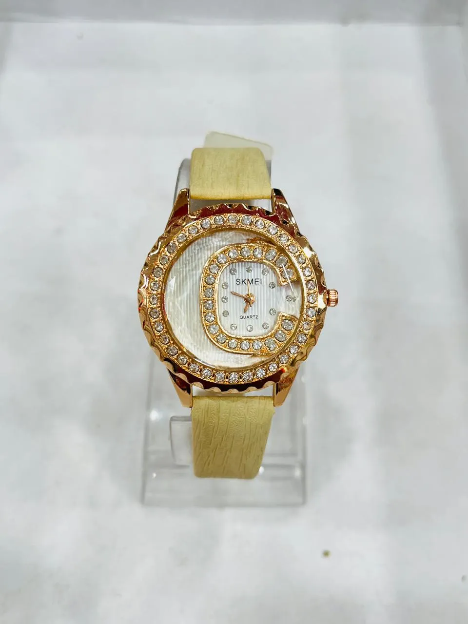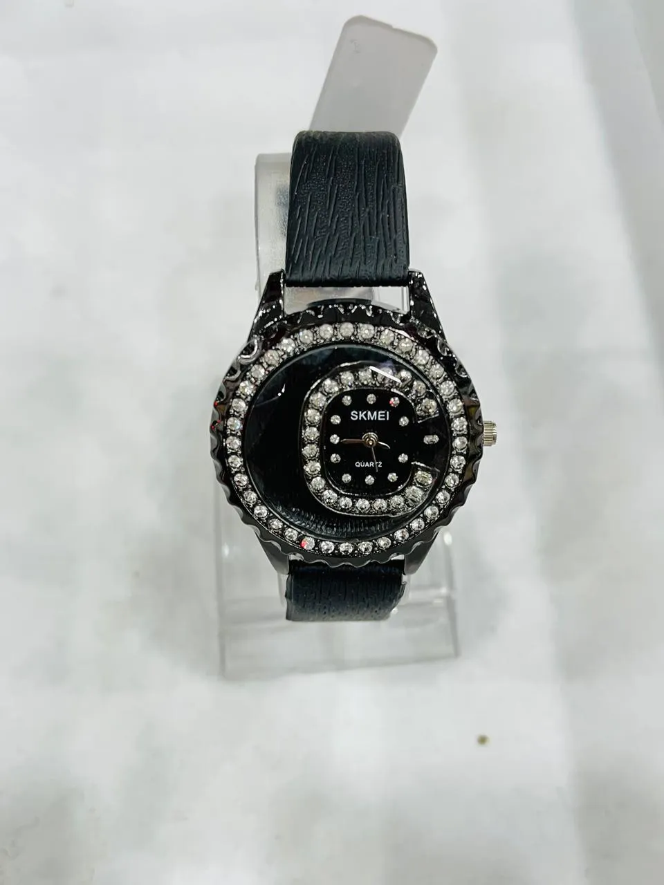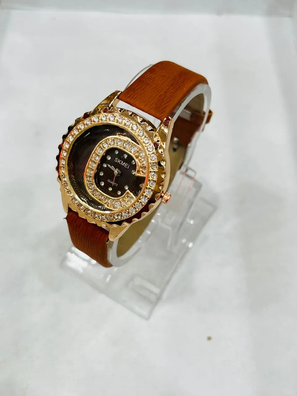 Here’s a curated selection of ladies’ watches with leather straps and round dials adorned with artificial diamonds, blending elegance and sparkle across budgets: