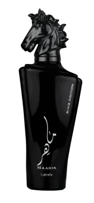 Lattafa Maahir Black Edition EDP (100ml) is a bold, masculine fragrance with a luxurious and modern appeal. It opens with fresh citrus and spicy notes, leading to a woody, aromatic heart with hints of leather and amber. The base is deep and seductive, featuring oud, patchouli, and musk for a long-lasting, sophisticated finish. Perfect for evening wear or special occasions, it exudes confidence and elegance.