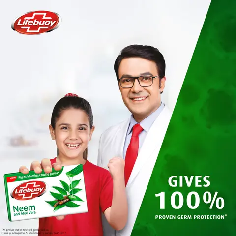 Lifebuoy Soap Neem 128g is an antibacterial soap enriched with neem extract, known for its germ-fighting properties. It helps protect against bacteria, keeping skin clean and healthy. The soap is designed for daily use, offering a refreshing cleanse while combating odor and skin impurities. Ideal for those seeking hygiene and skin protection.