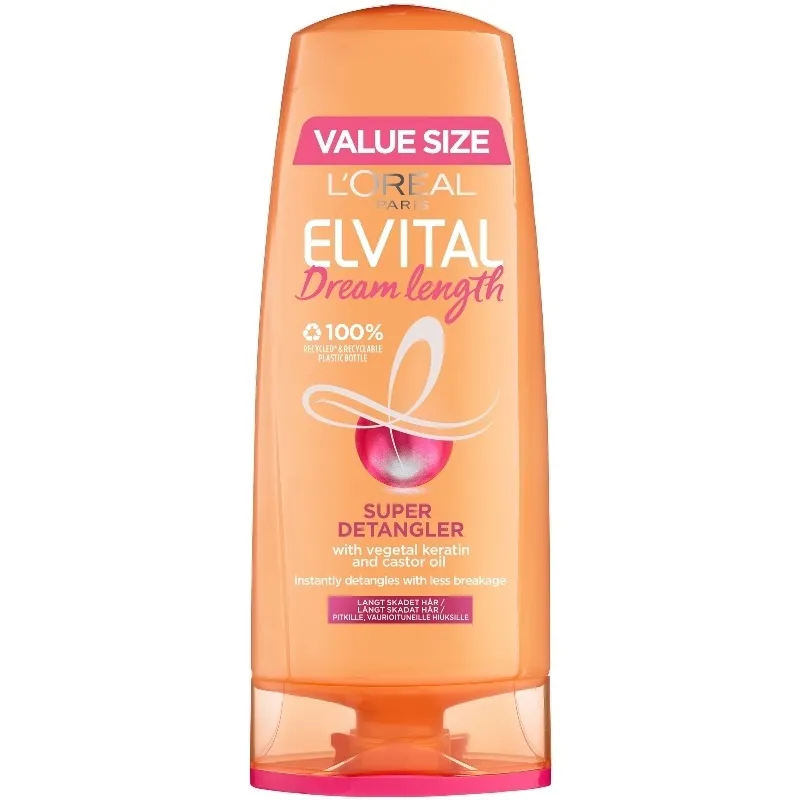 L'Oréal Paris Dream Lengths Conditioner (400ml) is a nourishing hair conditioner designed to help repair and protect long, fragile hair prone to breakage. Enriched with Castor Oil and Keratin, it helps strengthen hair fibers, reduce split ends, and improve elasticity. The formula is sulfate-free, paraben-free, and vegan, making it gentle on hair while providing hydration and smoothness. Ideal for those aiming to maintain long, healthy hair with reduced breakage.