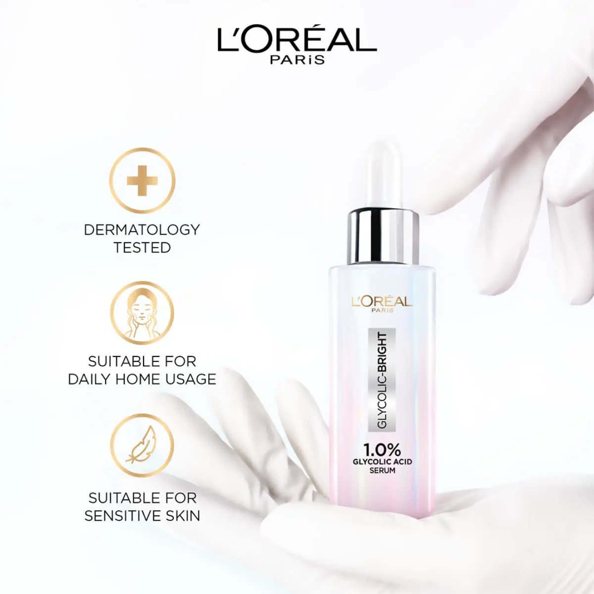 The L'Oréal Paris Glycolic Bright Instant Glow Face Serum (30ml) is a brightening serum infused with 1.5% glycolic acid and vitamin C. It aims to exfoliate dead skin cells, reduce dullness, and reveal a radiant complexion. The lightweight formula helps improve skin texture, even out tone, and boost glow with regular use. Suitable for all skin types, it is dermatologically tested and free from parabens and mineral oil. Ideal for those seeking a brighter, smoother, and more luminous appearance.