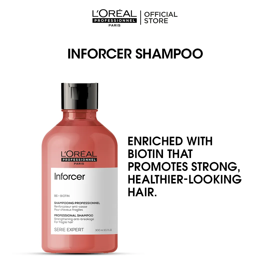 The L'Oréal Professionnel Serie Expert Absolut Repair Inforcer Shampoo (1500ml) is a professional-grade shampoo designed to strengthen and repair damaged hair. Enriched with ceramide and protein, it helps rebuild hair fibers, reduce breakage, and restore resilience. Ideal for weak, brittle, or over-processed hair, it gently cleanses while reinforcing the hair’s structure. The large 1.5L bottle is perfect for salon use or long-term at-home care.