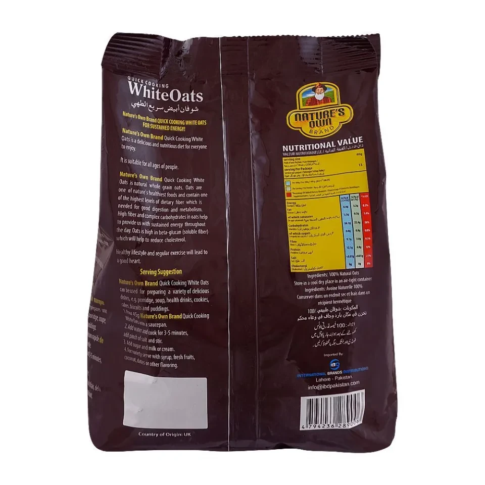 Nature's Own White Oats Packet 1Kg is a wholesome and nutritious choice for a healthy lifestyle. Made from 100% natural oats, this versatile product is perfect for creating a variety of meals, from hearty breakfasts to savory dishes. Rich in fiber and essential nutrients, these white oats help support digestion, provide sustained energy, and promote overall wellness. Easy to prepare and suitable for all dietary preferences, Nature's Own White Oats is a must-have staple for your kitchen. The 1Kg pack offers excellent value, ensuring you have plenty to enjoy every day.