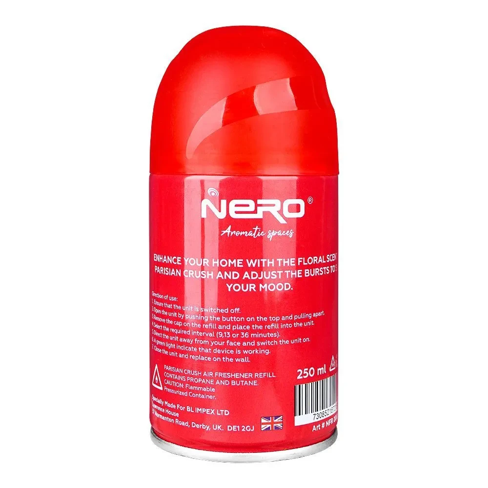 Nero Freshener Refill Parisian Crush 250ML" is an air freshener product sold in Pakistan. Here is a description based on its name and common product characteristics: