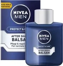 After shaving, take a small amount of Nivea After Shave Balm Protect and Care and apply it evenly to your face and neck.