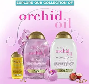 The OGX Conditioner Orchid Oil (385ml) is a nourishing hair conditioner designed to hydrate and add shine. Enriched with orchid oil, it helps to soften and smooth dry, damaged hair while improving manageability. The formula is sulfate-free and adds lightweight moisture without weighing hair down. It has a floral fragrance and is suitable for most hair types, especially those needing extra hydration. The sleek, travel-friendly bottle makes it convenient for daily use.