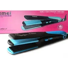 The Kemei Hair Straightener 2-in-1 and Curler 2209 is a versatile styling tool that combines a flat iron and curling wand for multiple hairstyles. It features adjustable temperature settings (up to 200°C), ceramic-coated plates for smooth glide, and a dual-function design for straightening or creating curls/waves. Its compact size, quick heat-up time, and swivel cord make it convenient for home or travel use. Ideal for achieving sleek, straight hair or bouncy curls with minimal damage.
