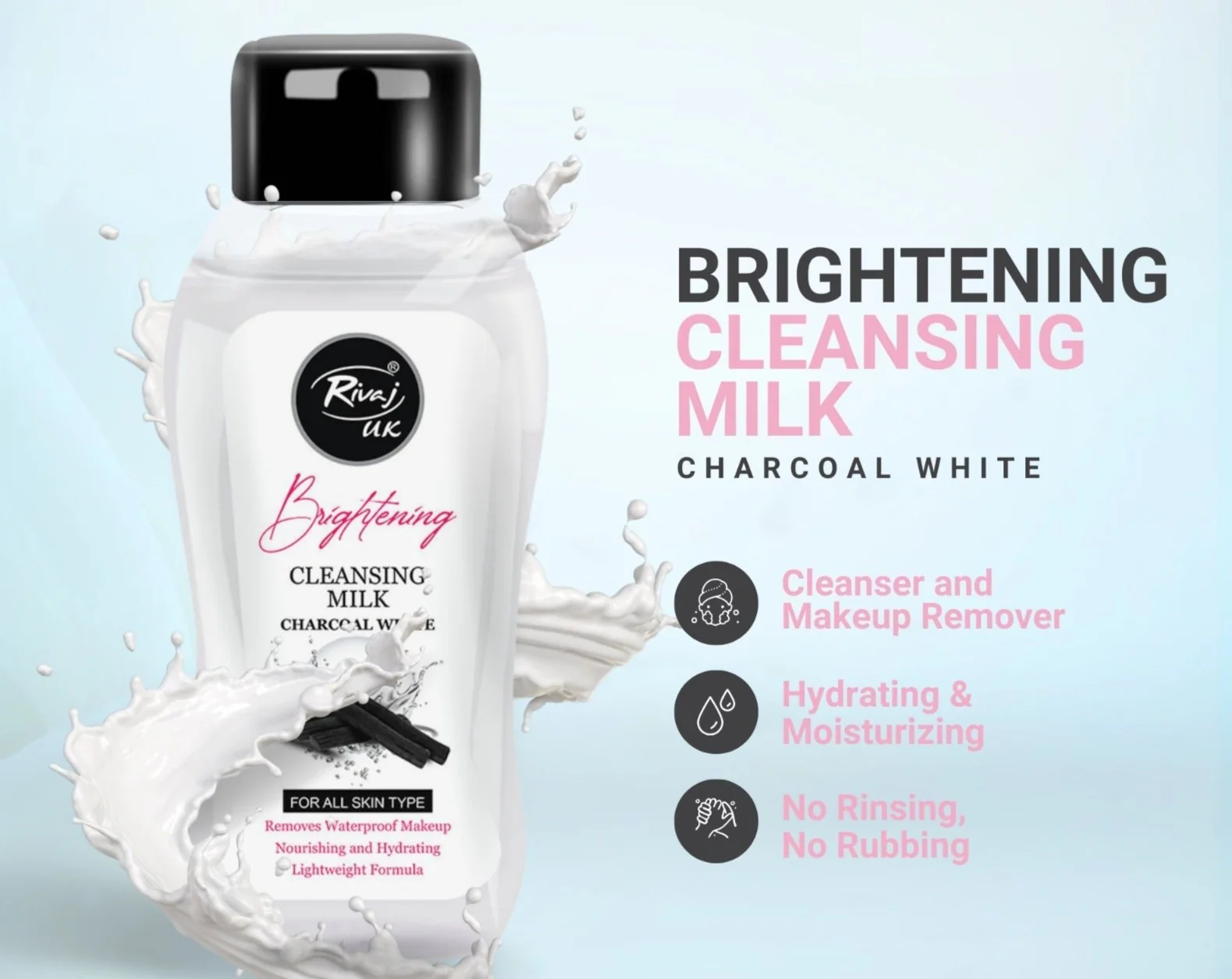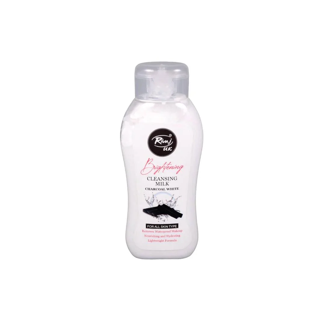 Rivaj Cleansing Milk Charcoal White 100ML is a deep-cleansing facial milk designed to remove impurities, excess oil, and dirt while brightening the skin. Enriched with charcoal, it helps unclog pores, control sebum, and promote a clearer, more radiant complexion. Suitable for all skin types, especially oily and dull skin, it provides a gentle yet effective cleanse without over-drying.