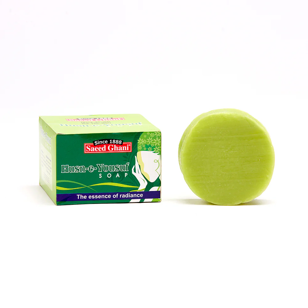 Saeed Ghani Soap Husn-e-Yousaf (90g) is a traditional herbal soap known for its skin-nourishing properties. It contains natural ingredients like olive oil, sandalwood, and rose extracts, which help in cleansing, moisturizing, and brightening the skin. The soap is popular for its mild fragrance and is often used to maintain a soft, glowing complexion. Ideal for daily use, it is especially favored for its herbal benefits and gentle formulation.