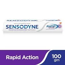 Sensodyne Rapid Action 100g is a toothpaste specially formulated for sensitive teeth. It provides fast relief from tooth sensitivity by targeting the root cause, helping to block pain signals. Its low-abrasion formula cleans gently while protecting enamel. Ideal for daily use, it also offers cavity protection and freshens breath. Suitable for those with sensitive teeth seeking quick results.