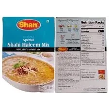 Shan Shahi Haleem Mix (300g) is a premium spice blend by Shan Foods, designed to simplify the preparation of traditional Haleem—a rich, slow-cooked stew made with wheat, lentils, and meat. This mix includes a balanced combination of spices, lentils, and wheat for authentic flavor and texture. Just add meat, water, and oil to create a delicious, aromatic Haleem with minimal effort. Ideal for those who enjoy a hearty, protein-packed meal with authentic South Asian taste.
