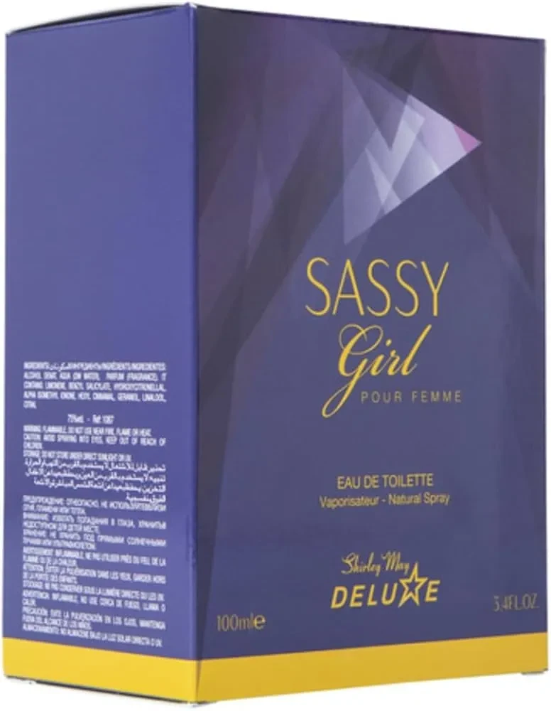Shirley May Eau De Toilette Deluxe Sassy Girl Pour Femme 100ML is a vibrant and youthful fragrance crafted for the modern, confident woman. This captivating scent opens with a burst of fresh and fruity notes, seamlessly blending into a heart of floral elegance that exudes charm and femininity. The base features warm, sensual undertones that leave a lasting impression, making it perfect for both day and evening wear. Encased in a chic and stylish bottle, Sassy Girl embodies energy, confidence, and individuality, making it a delightful addition to your fragrance collection. Indulge in its irresistible aroma and let your personality shine through.