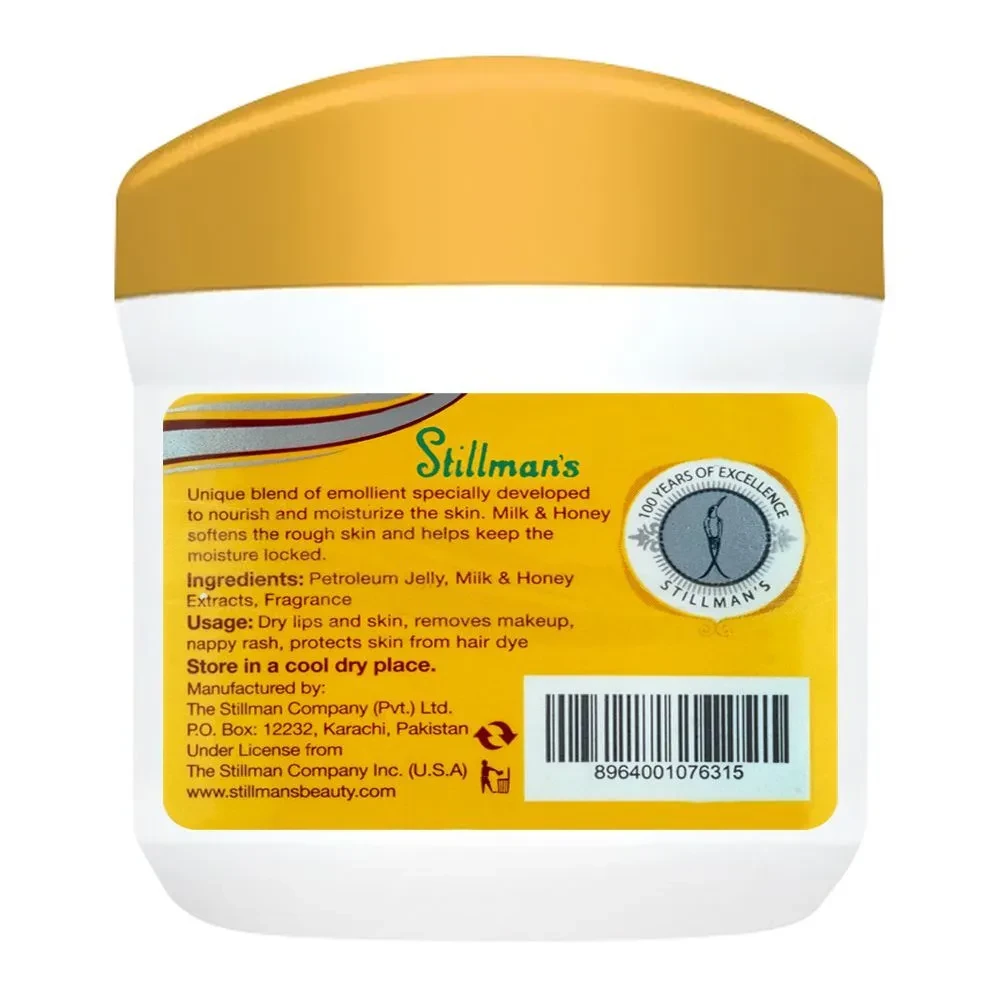 Treat your skin to the moisturizing power of Stillman's Petroleum Jelly Milk And Honey 100G, and experience the perfect blend of hydration and fragrance for a silky-smooth feel.