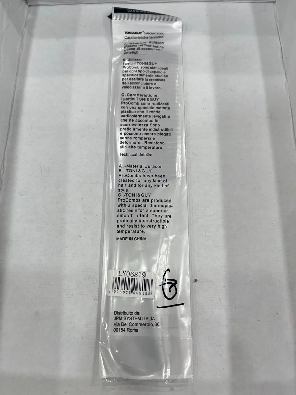 The Toni & Guy Comb Antistatic LY06819 is a professional styling comb designed to reduce static and frizz while detangling and smoothing hair. It features a sleek, ergonomic design with fine teeth for precise control, making it ideal for blow-drying, sectioning, and styling. The antistatic properties help minimize flyaways, ensuring a polished finish. Suitable for all hair types, it’s a staple in salons and home grooming routines.