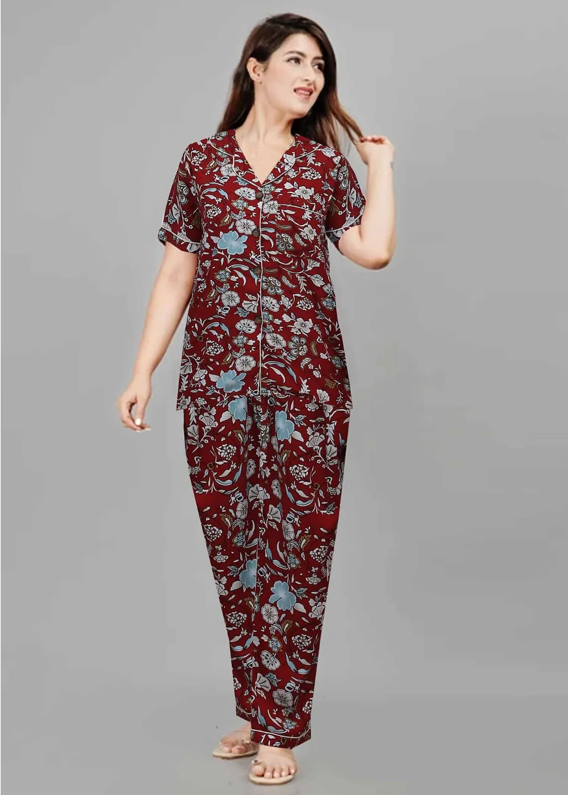 The Lovina Mix Colors Women's Night Suit is a comfortable and stylish sleepwear set designed for relaxation. It typically includes a soft, breathable nightie or pajama set in a mix of vibrant or pastel colors, featuring a relaxed fit for ease of movement. Made from cozy fabrics like cotton or modal, it ensures a good night's sleep while adding a touch of feminine charm. The design may include lace trims, floral prints, or button-down styles, making it both practical and fashionable for bedtime. Perfect for lounging or sleeping in comfort!