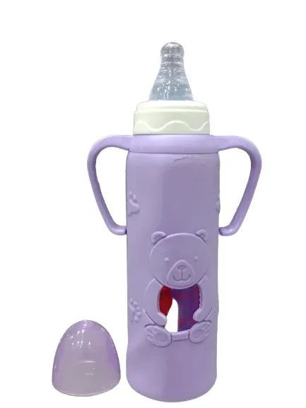 The 4es Feeder Glass with Rubber Handle (240ml) is a durable, ergonomic feeding glass designed for infants and toddlers. It features a Rubber handle for easy gripping, a smooth rim for comfortable drinking, and a 240ml capacity, making it ideal for small servings of milk, water, or juice. The glass is made from high-quality, safe materials (often heat-resistant borosilicate glass) and is easy to clean. Its compact size and sturdy design help transition babies from bottles to regular cups.