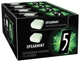 Brand/Flavor: Wrigley’s 5 Gum Spearmint Rain, a sugar-free chewing gum with a refreshing, tingly spearmint flavor 13.