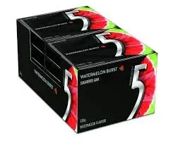 Brand/Flavor: Wrigley’s 5 Gum Watermelon Burst, a sugar-free chewing gum with a bold, juicy watermelon flavor and long-lasting freshness 246.