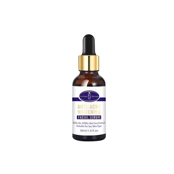 The Aichun Beauty Anti Acne Facial Serum (AC31952) is a 30ml skincare product formulated to combat acne and promote skin healing. Enriched with aloe vera extract and salicylic acid, it targets acne-prone areas to reduce dryness, redness, and swelling. The serum aids in dispelling acne, accelerating wound healing, and repairing damaged skin, leaving the complexion smoother and more radiant. Regular application can also help lighten acne marks and even out skin tone.