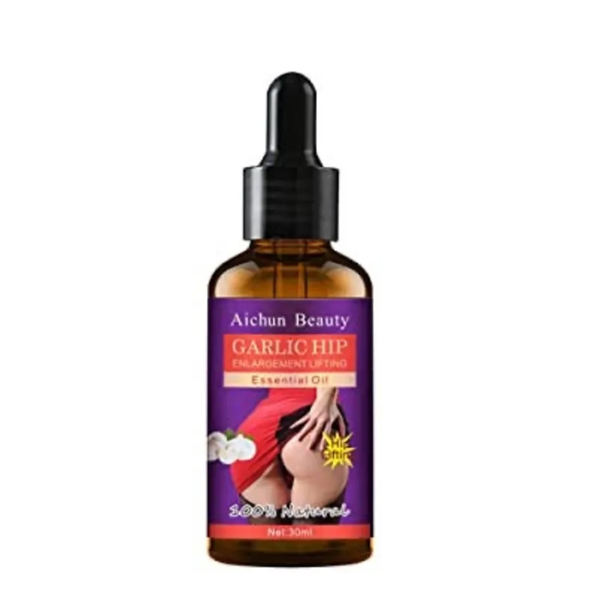 Aichun Beauty Garlic Hip Oil (30ml) is a topical essential oil designed to enhance and firm the buttocks. Formulated with garlic extract and a blend of natural oils, it aims to stimulate fat synthesis, improve blood circulation, and promote skin elasticity in the hip area. Regular use is intended to create a fuller, more contoured appearance without the need for invasive procedures.