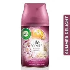 The Air Wick Freshener Refill Summer Delights (250ml) is a scented oil refill designed for Air Wick plug-in diffusers. It features a vibrant, fruity, and floral fragrance inspired by summer, with notes of juicy berries, tropical fruits, and fresh blossoms. The long-lasting formula provides continuous fragrance for up to 60 days (on low settings) and offers an adjustable intensity level. Perfect for creating a refreshing and inviting summer atmosphere at home.
