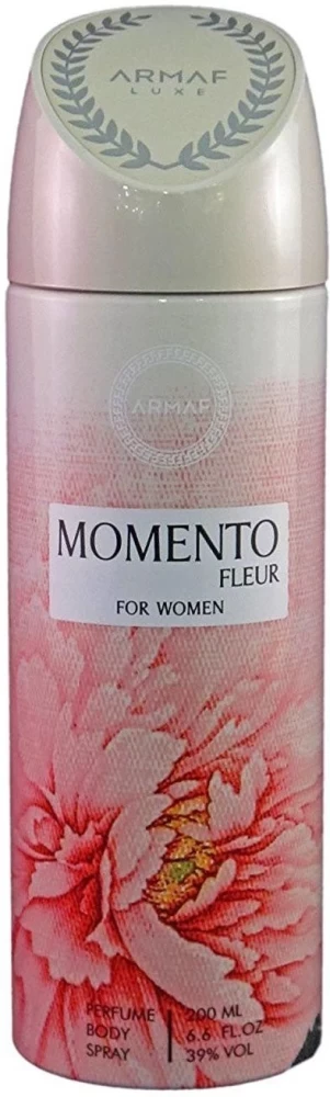 **Armaf Deodorant Body Spray Momento Fleur (Women) 200ML** is a refreshing and long-lasting fragrance spray designed for women. It features a floral and fruity scent, blending delicate floral notes with sweet, fruity undertones for a feminine and elegant aroma. The lightweight, non-greasy formula provides all-day freshness while keeping you feeling confident. Ideal for daily wear, it comes in a convenient 200ML bottle for easy application.
