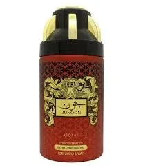 ASDAAF Deodorant Body Spray Junoon 250ML is a long-lasting fragrance spray designed to keep you fresh and confident. With a bold, oriental scent, it offers a blend of spicy, woody, and musky notes. The 250ml bottle provides a generous quantity for daily use, ensuring lasting protection against body odor while leaving a captivating trail. Ideal for men who prefer a strong, distinctive fragrance.