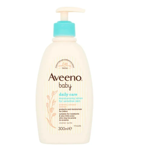 Aveeno Baby Daily Moisture Lotion 300ml is a gentle, fragrance-free moisturizer designed for your baby's delicate skin. Formulated with natural colloidal oatmeal and dimethicone, it provides 24-hour hydration, helping to soothe and protect against dryness, chafing, and irritation. This non-greasy, hypoallergenic lotion absorbs quickly and is suitable for daily use on sensitive skin, including that of newborns. It's free from parabens, phthalates, and dyes, making it a trusted choice for maintaining soft, smooth, and healthy baby skin.