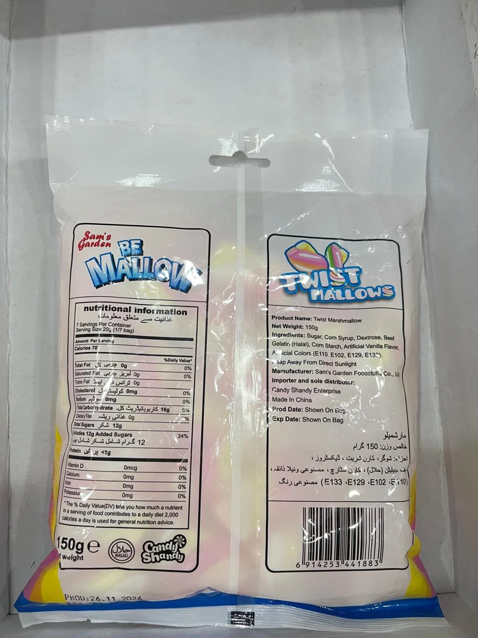 Be Mallow Marshmallow Twist 150g is a fun and chewy marshmallow candy with a twisted rope-like design. It comes in various fruity flavors, offering a soft, fluffy texture that’s perfect for snacking. The 150g pack is convenient for sharing or enjoying on the go. Ideal for marshmallow lovers who enjoy playful, sweet treats!
