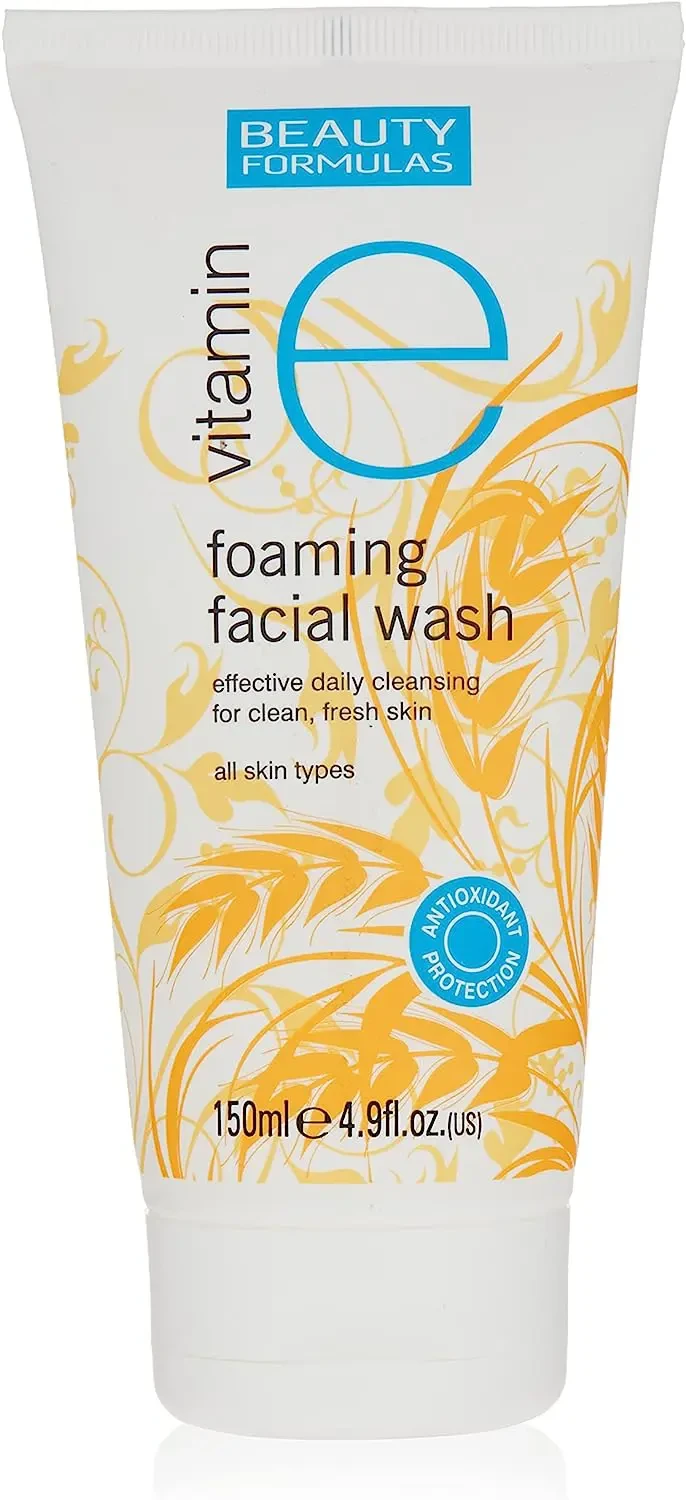 Beauty Formulas Facial Wash with Vitamin E (150ml)  is a gentle cleanser designed to cleanse and nourish the skin. Enriched with **vitamin E**, it helps hydrate, protect against free radicals, and promote a healthy complexion. Suitable for most skin types, it removes impurities without stripping natural oils, leaving skin soft and refreshed. Ideal for daily use.