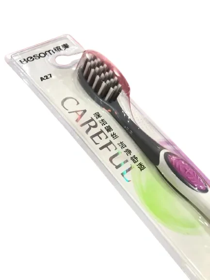 The Besom Toothbrush No A27 is a traditional-style toothbrush with natural bristles, typically made from animal hair or plant fibers. It features a simple, ergonomic handle (often wooden or bamboo) and is designed for effective cleaning while being eco-friendly. The "No A27" likely refers to a specific model or size variant.