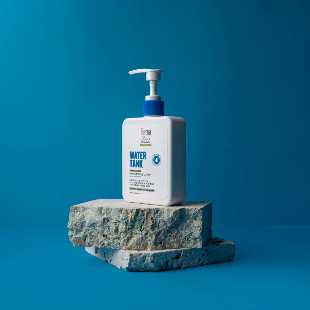 Apply a generous amount of Derma Shine Lotion Moisturizing Water Tank onto clean, dry skin.