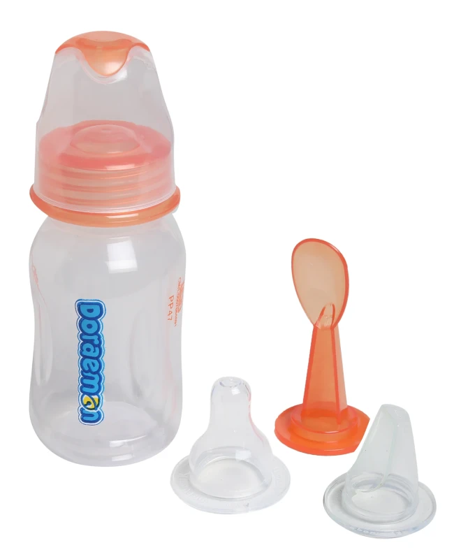 Make feeding time fun and safe with the **Doraemon Glass Feeding Bottle 125ML**. Designed with a charming Doraemon character print, this bottle combines durability and style. The high-quality glass construction is BPA-free, ensuring a safe feeding experience for your little one. Its 125ML capacity is perfect for newborns and infants, while the ergonomic shape makes it easy to hold. The bottle comes with a soft, anti-colic nipple that promotes a natural feeding flow, reducing discomfort. A must-have for parents looking for both functionality and a touch of cuteness!