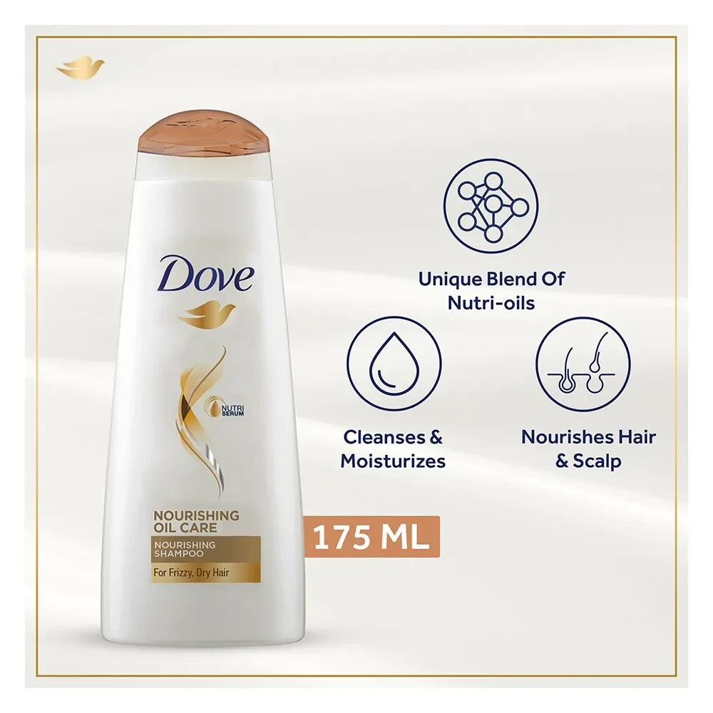 Pamper your hair with the indulgent care of Dove Nourishing Oil Care Shampoo 175ML, designed to deeply nourish and smooth dry, frizzy hair. Enriched with a blend of natural oils, this shampoo restores moisture, leaving your hair soft, silky, and manageable.