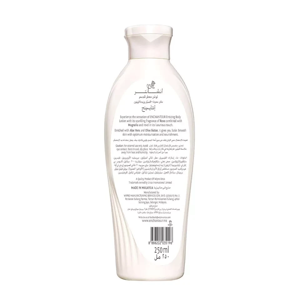 Experience the elegance of soft and beautifully scented skin with Enchanteur Lotion Enticing. Enriched with a mesmerizing blend of floral and fruity notes, this lotion hydrates your skin, leaving it silky smooth and delicately fragrant.
